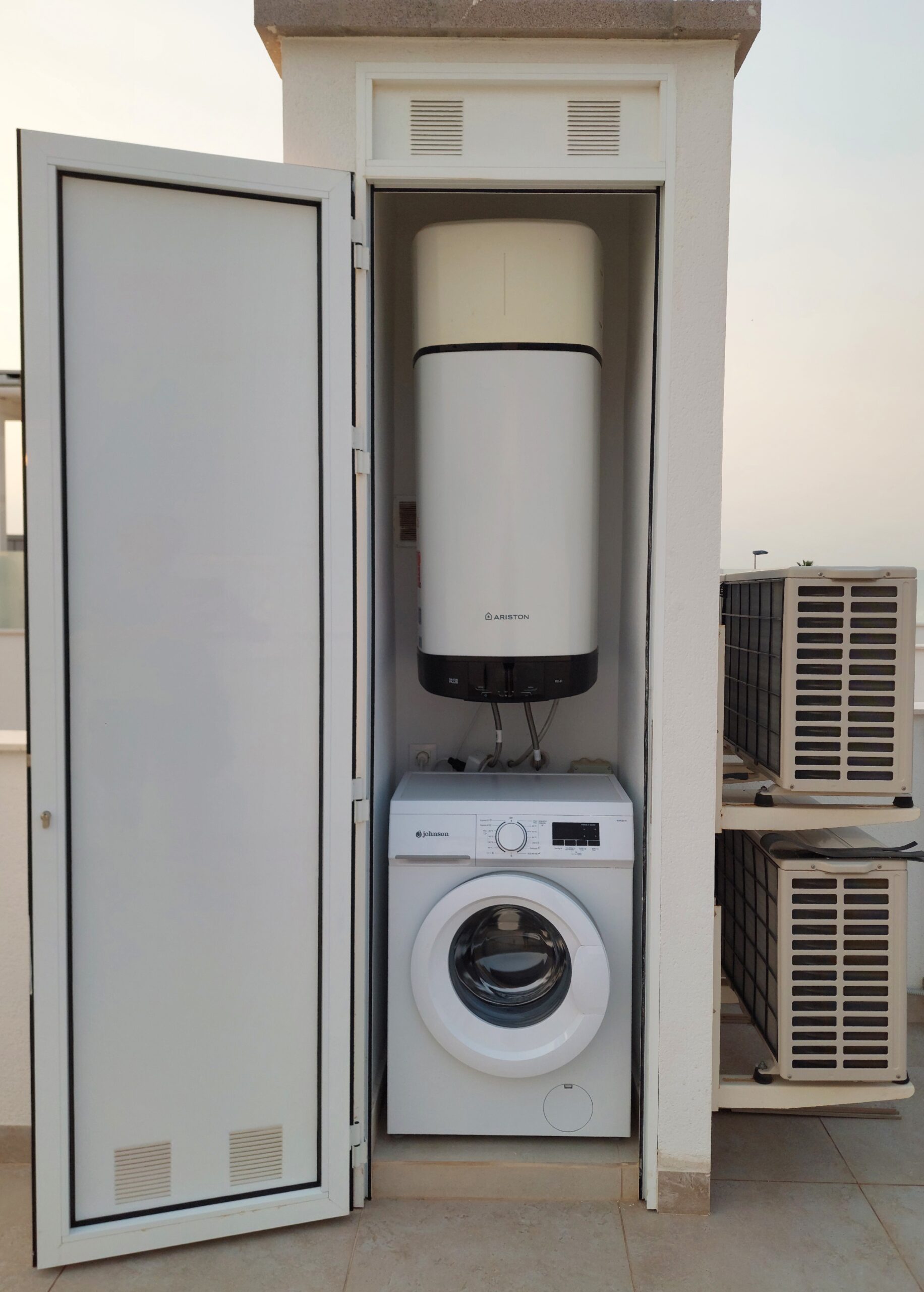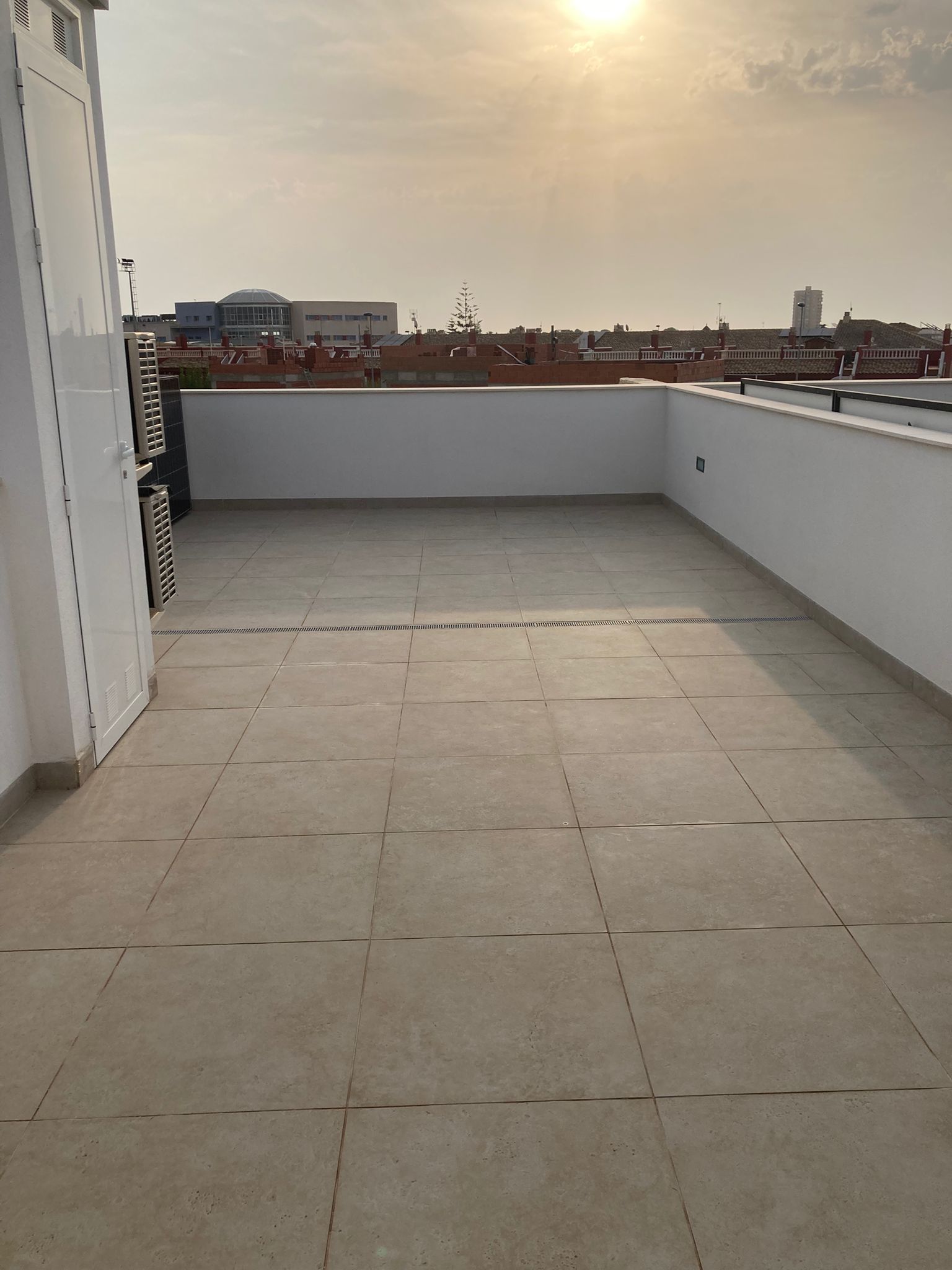 Op de bovenverdieping vind je een ruim dakterras (solarium) van 39 m² met volop zon en twee zonnebedden. Hier vindt u ook een kast met een wasmachine en wasrek, zodat u tijdens uw verblijf een wasje kunt doen. Vanaf het solarium heb je uitzicht over de omgeving van San Javier.