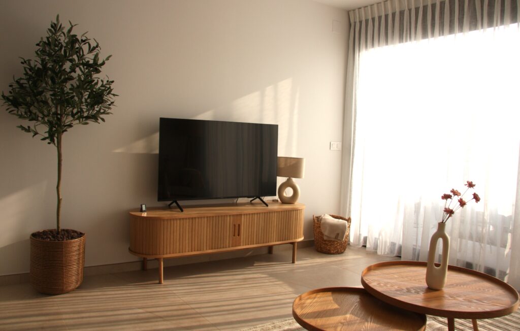 De lichte woonkamer is modern ingericht en biedt volop comfort. Met een ruime zithoek, smart TV met Amazon Prime Video, Bluetooth-speaker en kamerhoge in-between gordijnen is dit de plek om samen te ontspannen. De airconditioning zorgt voor een aangename temperatuur. Er is voldoende kastruimte om uw persoonlijke spullen op te bergen. De grote ramen zorgen voor veel natuurlijk licht en een ruimtelijk gevoel. Via de schuifpui stap je direct het zonnige terras op.